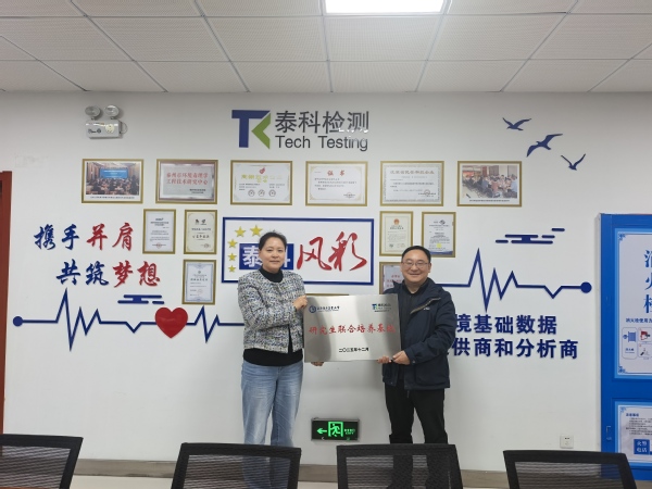 随后,学院一行赴泰州泰科检测科技江苏有限公司开展调研。总经理曹鹏详细阐述了企业发展战略与当前面临的技术挑战。周全法院长表示,泰科检测作为环境监测与治理领域的专业企业,为地方环保事业发挥了积极作用,学院将继续坚持应用型人才培养定位,紧密对接企业需求,推动在技术攻关与人才共育方面开展务实合作。会上,双方共同为研究生实践基地揭牌。