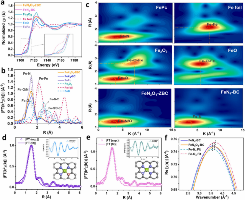 2. 原子级结构解析:结合XANES、EXAFS等手段,明确两类材料中Fe-N3O1与Fe-N4的配位结构差异。