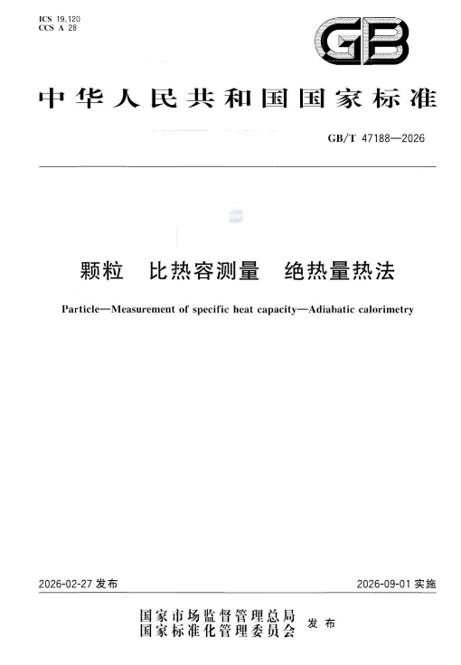 比热容是材料的热物性的重要指标之一,是研究相关材料所关注的重要指标。在材料研究与应用领域发挥着不可替代的指导作用。随着能源、材料、化学化工,以及航空航天等领域的快速发展,材料的基础研究与工程应用对于其比热容准确测量的需求日益凸显。绝热量热法具有测量温区宽、样品普适性强及测量误差低等优点,是目前测量凝聚态物质比热容最准确可靠的测量方法。本标准的制定对支撑材料研发与工程应用具有重要意义和价值。本标准于2026年9月1日正式实施。